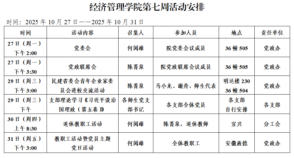 经济管理学院第七周活动安排