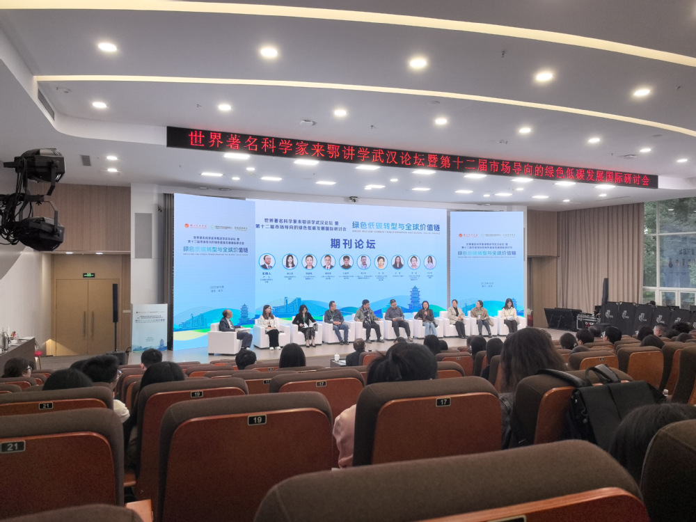 2025年10月25日,“世界著名科学家来鄂讲学武汉论坛暨第十二届市场导向的绿色低碳发展国际研讨会”在湖北经济学院成功举办。本次会议以“绿色低碳转型与全球价值链”为主题,汇聚了来自国内外高校、科研机构、政府及企业界的众多专家学者,围绕绿色低碳发展路径、全球价值链重构、碳市场机制等前沿议题展开深入交流。
