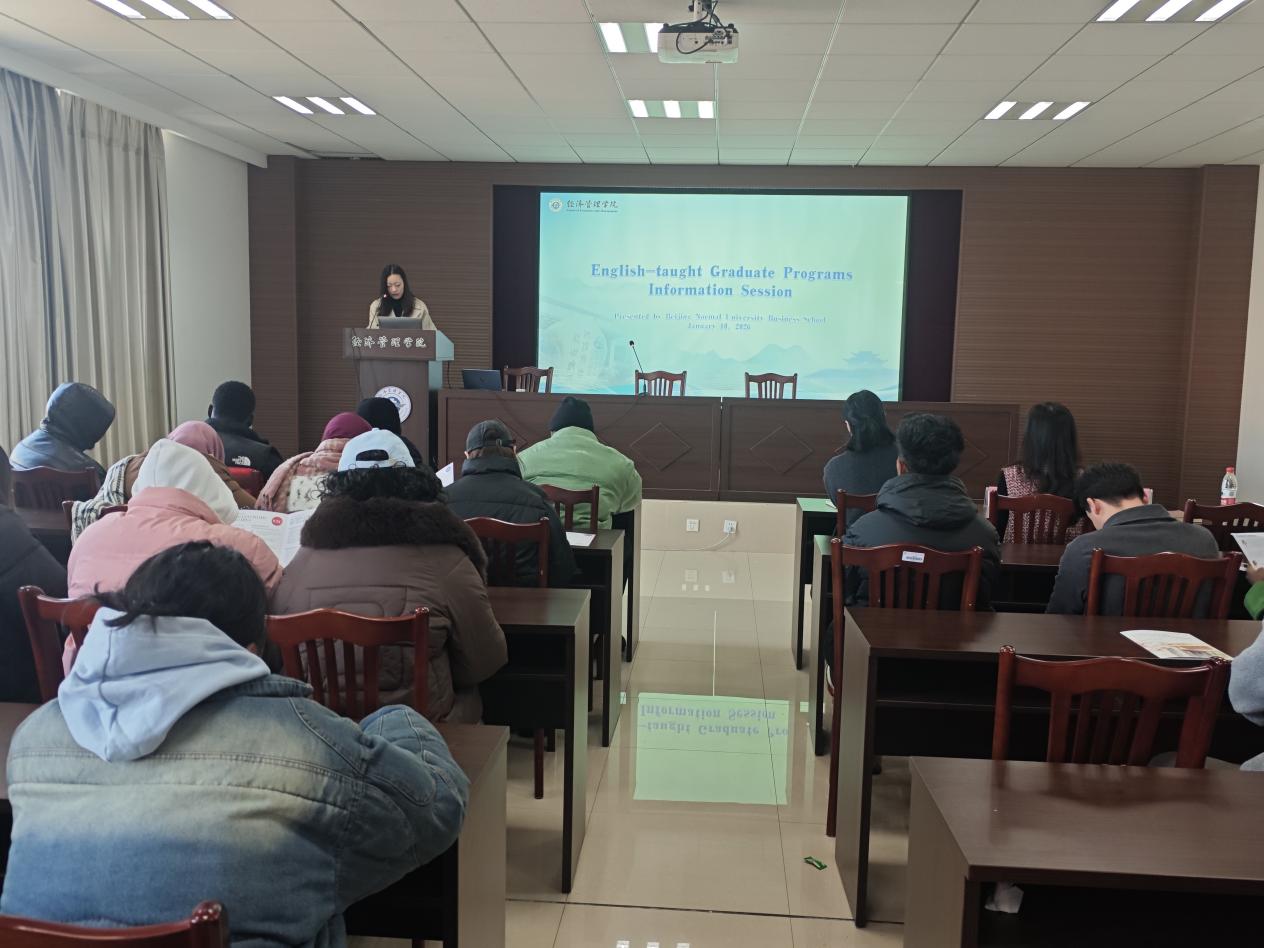 为拓展学院国际学生在华发展路径,助力国际学生把握在华高质量深造机遇,110日上午,北京师范大学经济与工商管理学院办公室主任王玮与国际认证办公室副主任李婧雅应邀来我院开展国际学生硕博英文授课项目专场宣讲会。学院党委副书记周颖、国际学生负责老师及百余名留学生到场参与宣讲会由周颖主持