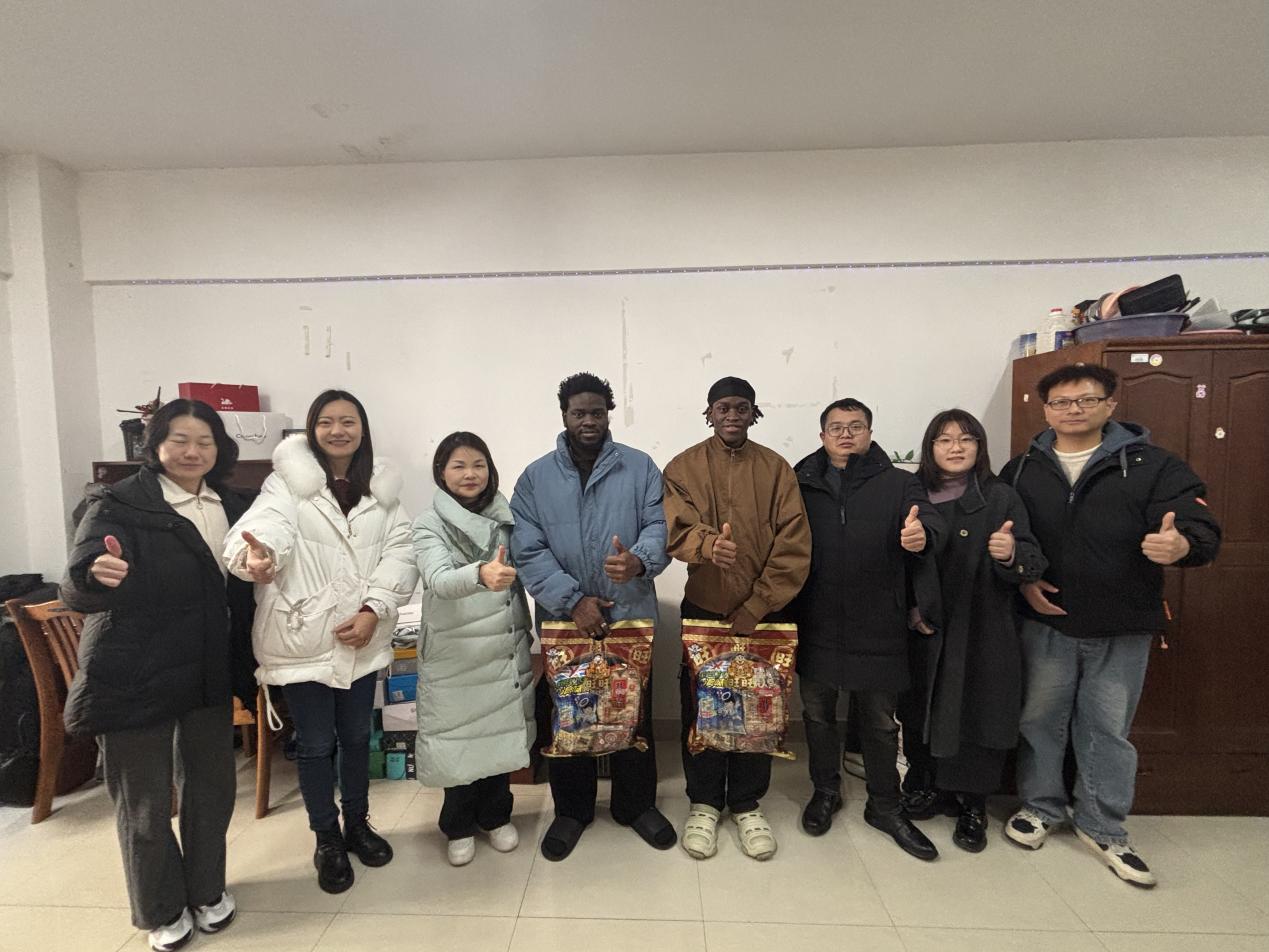 在走访中,学院领导实地查看了留学生宿舍内外的卫生环境和安全状况,与留学生们亲切交谈,详细了解同学们的生活学习以及寒假出行情况,勉励同学们要脚踏实地,努力提高自身的学习能力和专业素质;叮嘱同学们提高安全防范意识,确保假期安全。最后,学院领导给留学生送上一份“旺旺”大礼包,这份充满年味的礼物寄托了学院对留学生们新春佳节的美好祝愿,也希望他们在异国他乡能感受到浓浓的节日氛围和家一般的温馨。