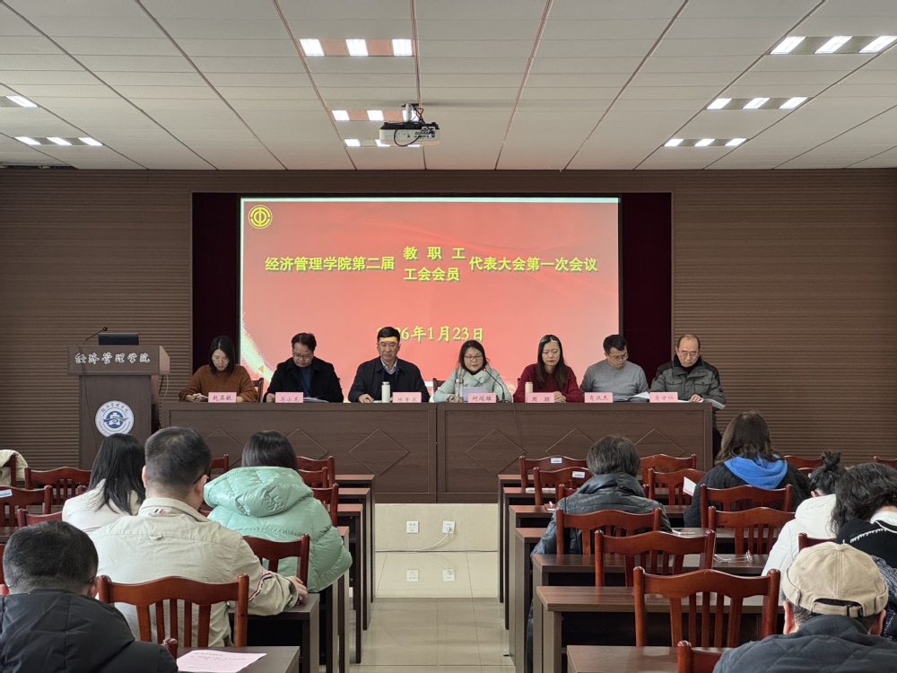 2026年1月23日,湖州师范学院经济管理学院第二届一次教职工代表暨工会会员代表大会(简称“双代会”)隆重召开。大会以“守正创新聚合力·锐意进取促发展”为主题,由学院党委书记何阅雄主持。