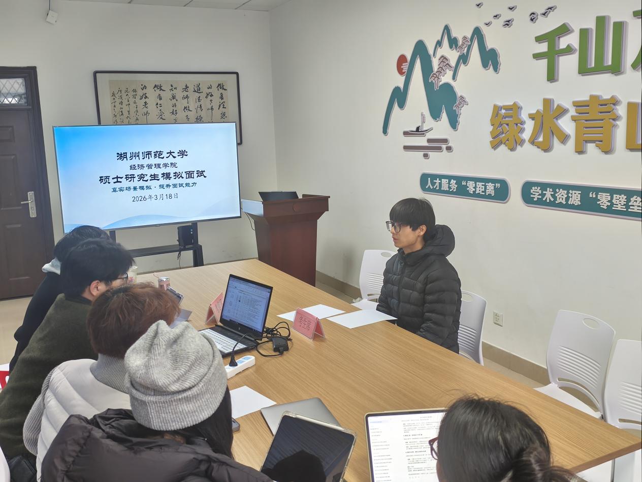 为帮助同学们提前适应复试考场节奏,学院精心组织了两轮全流程模拟面试活动,40余名同学积极参与。首轮模拟面试由优秀研究生组成模拟团队,重点帮助同学们熟悉复试全环节设置,纠正口语表达、礼仪规范等,帮助大家快速进入复试备考状态。